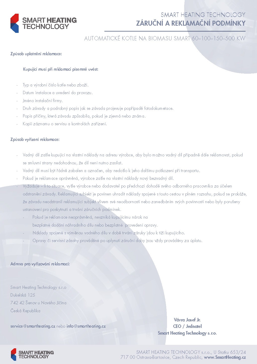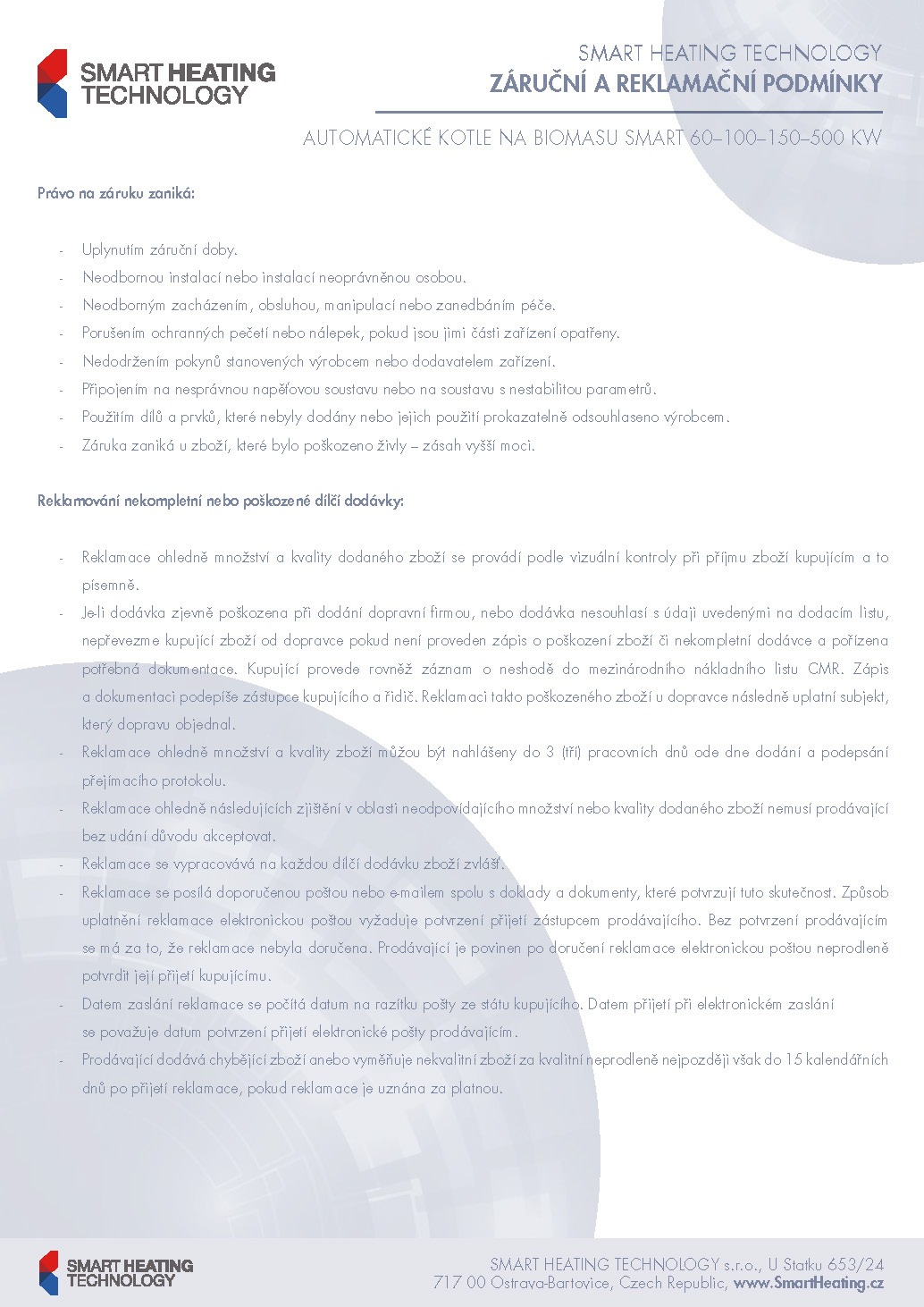 Záruční a Reklamační Podmínky Smart 150-500 kW (2019)