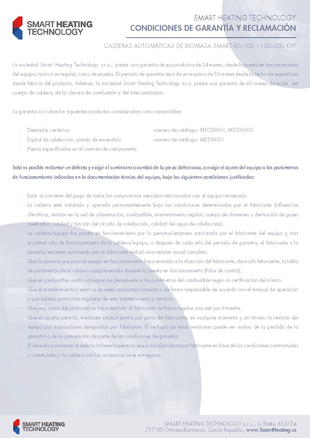 Condiciones de garantía y reclamación (2019)