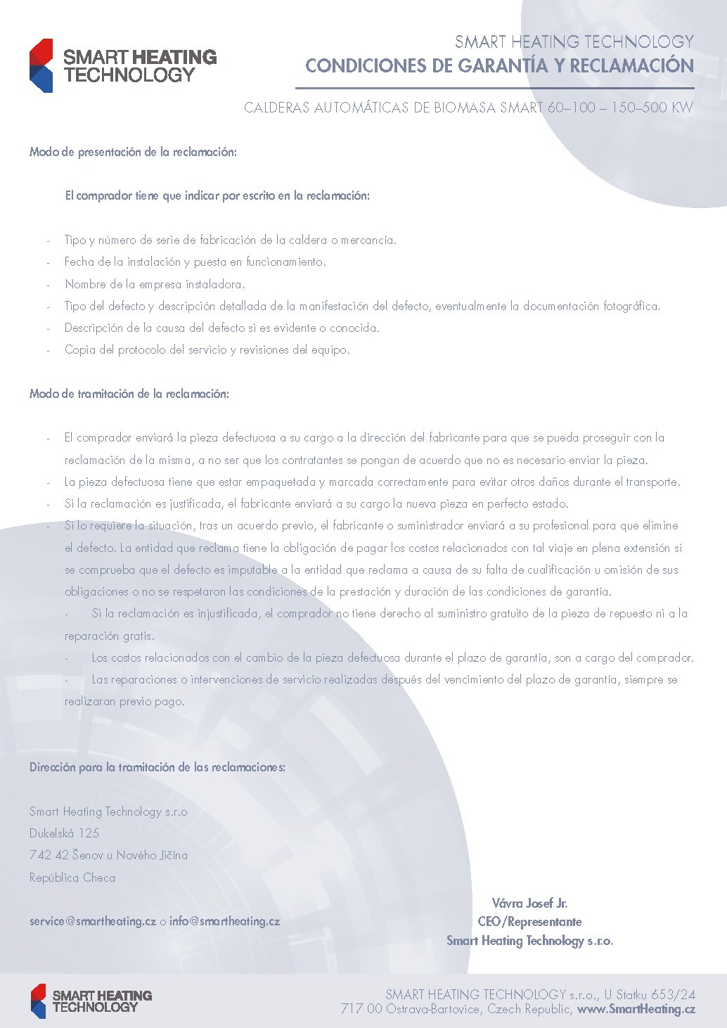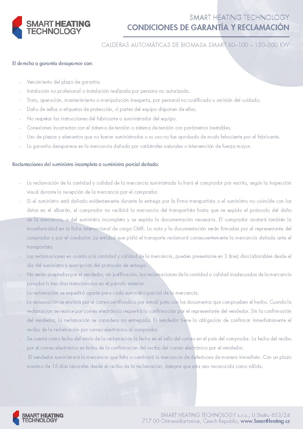 Condiciones de garantía y reclamación